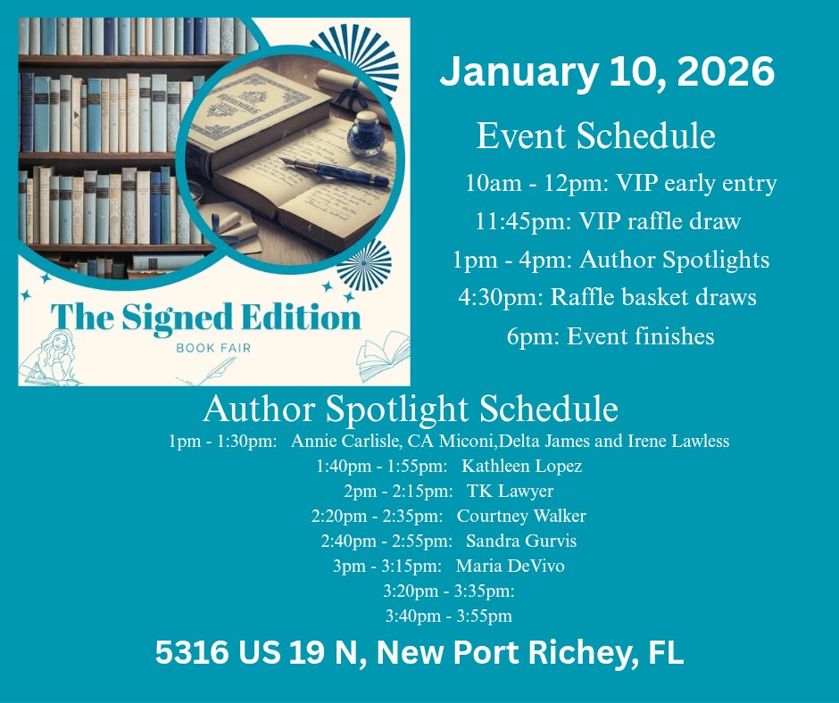 One more event to wrap up the year, and it’s your final opportunity to grab a signed copy! Signed books make unforgettable holiday gifts, so don’t miss out! Join me on December 6 th from 11 a.m. to 2 p.m. at Barnes & Noble in Regency Square,2428 W. Brandon Blvd., Brandon, FL 33511